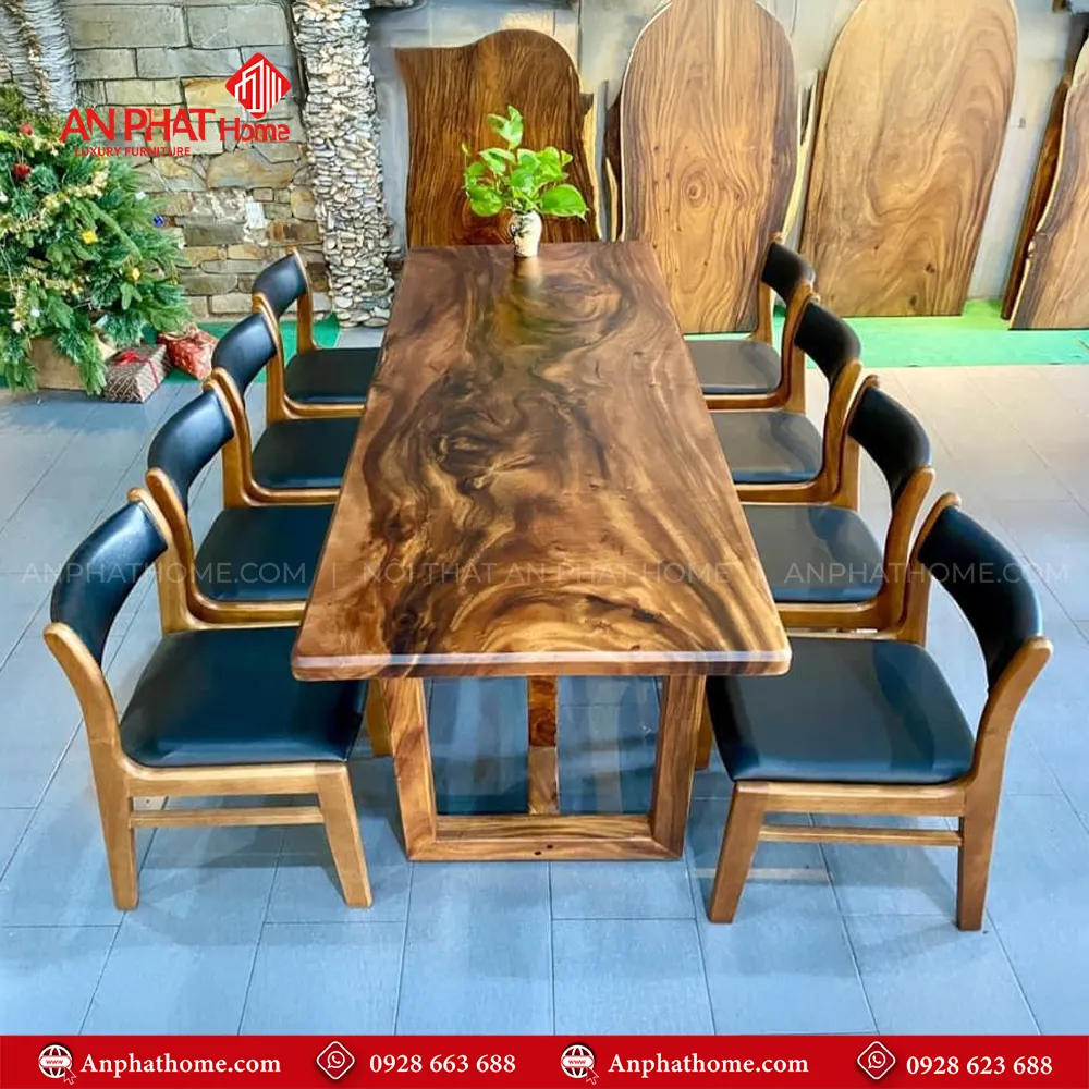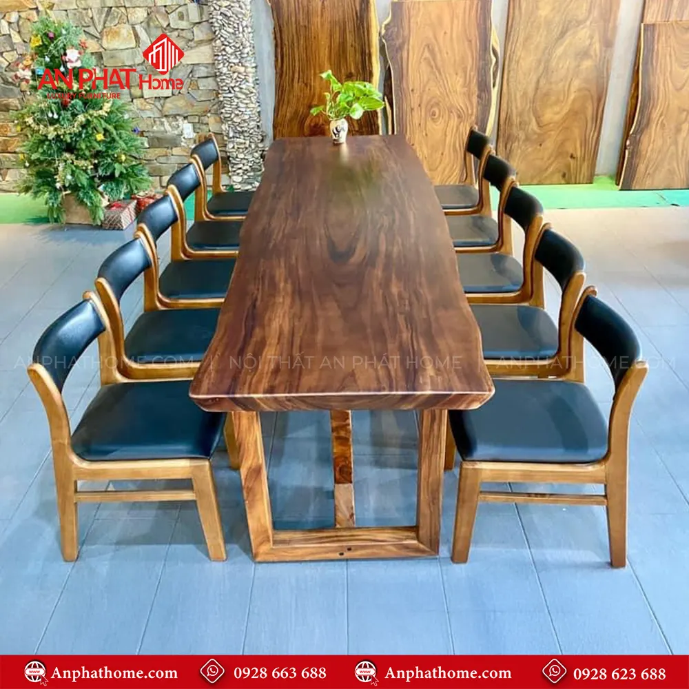 Bàn ăn gỗ me tây nguyên khối 8 ghế sang trong trọng BA-3011