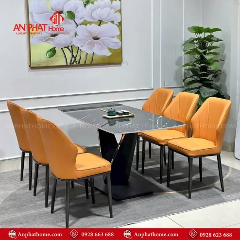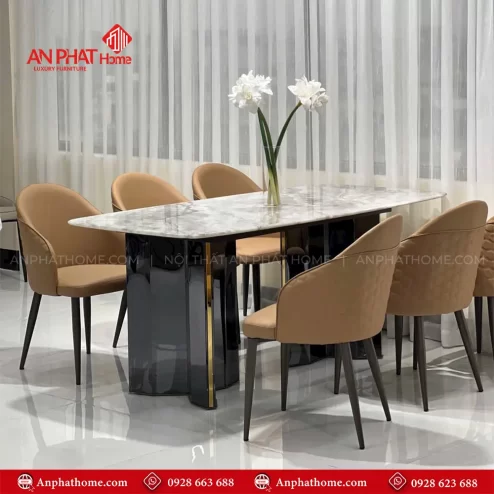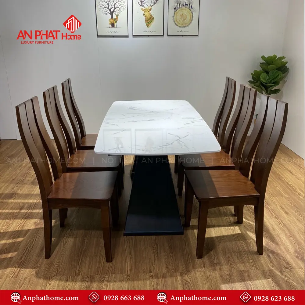 Bàn ăn mặt đá ghế gỗ sồi nga hiện đại BA-3030