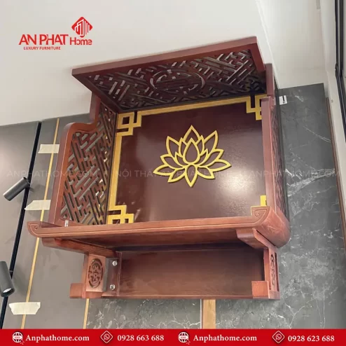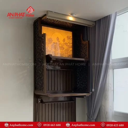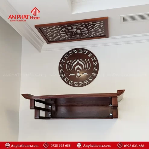 Bàn Thờ Treo Tường Chung Cư Kết Hợp Vách Gỗ Nan Sóng BT-2666