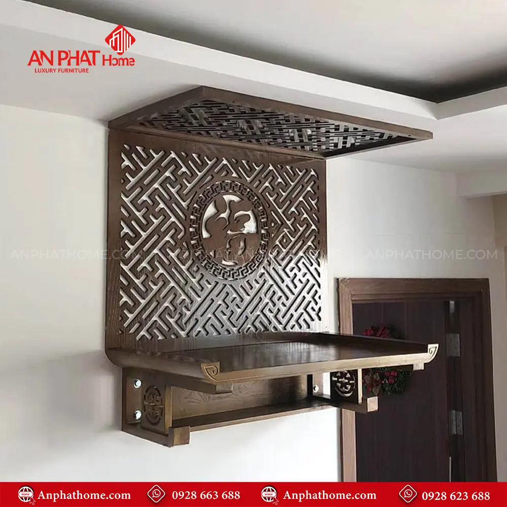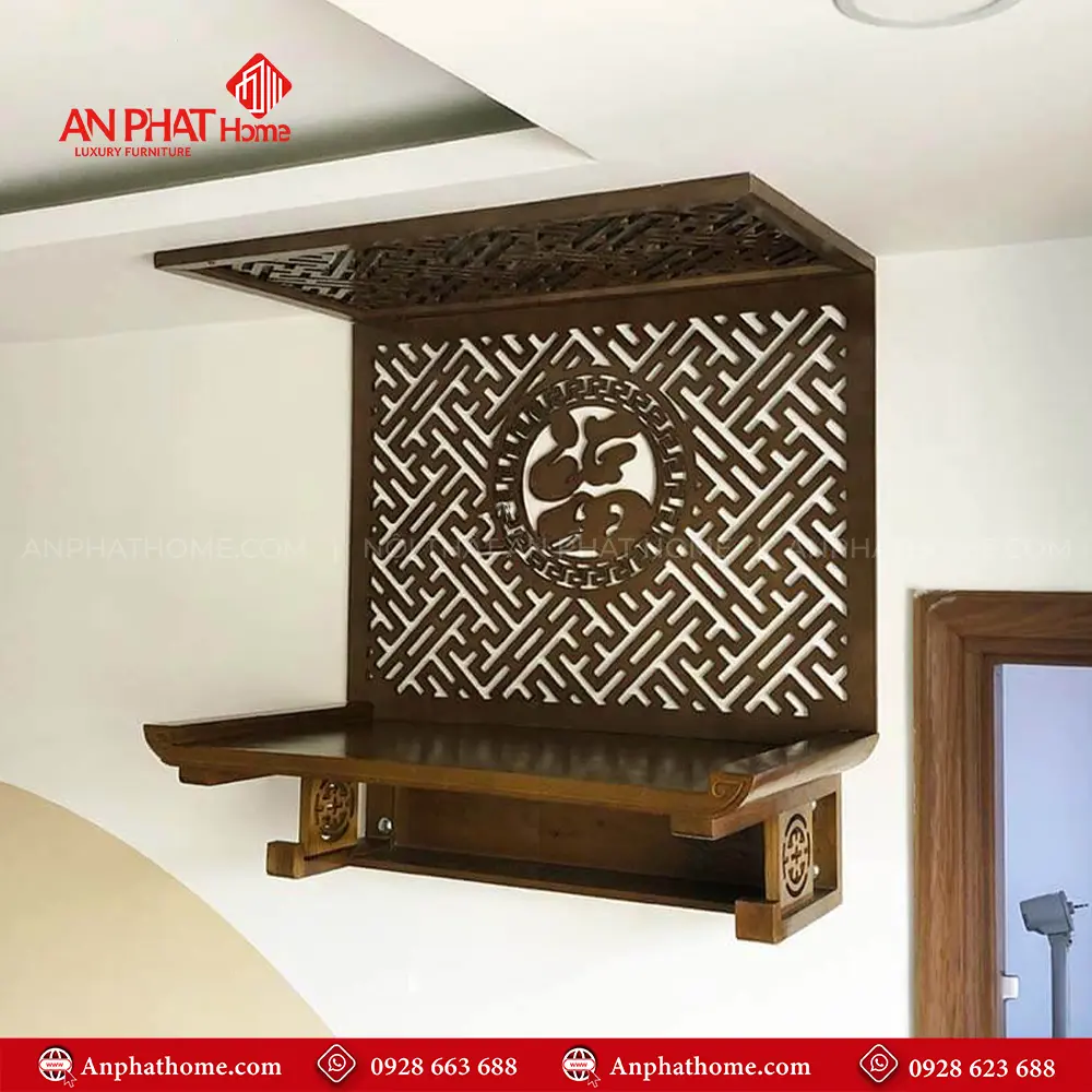 Bàn Thờ Treo Tường Đẹp Mẫu Ốp Hậu Cắt Vạn Chữ Phúc BT-2626