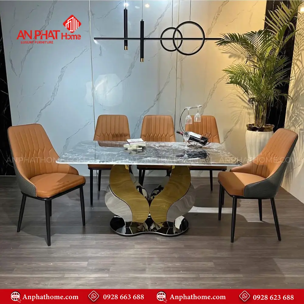 Bộ bàn ăn 6 ghế sang trọng mặt đá thạch anh BA-1990