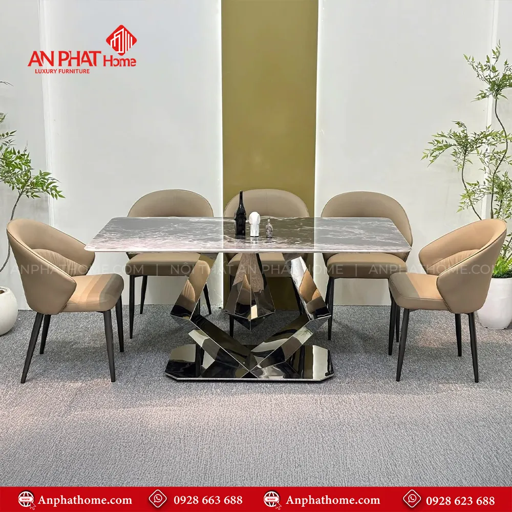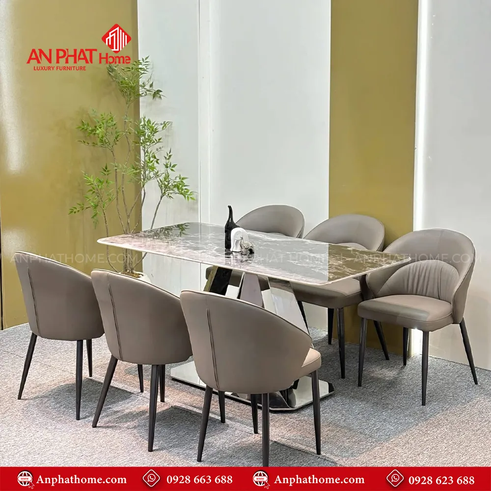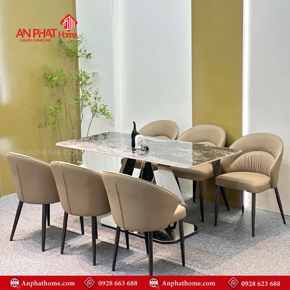 Bộ bàn ăn mặt đá 6 ghế da cao cấp BA-1958