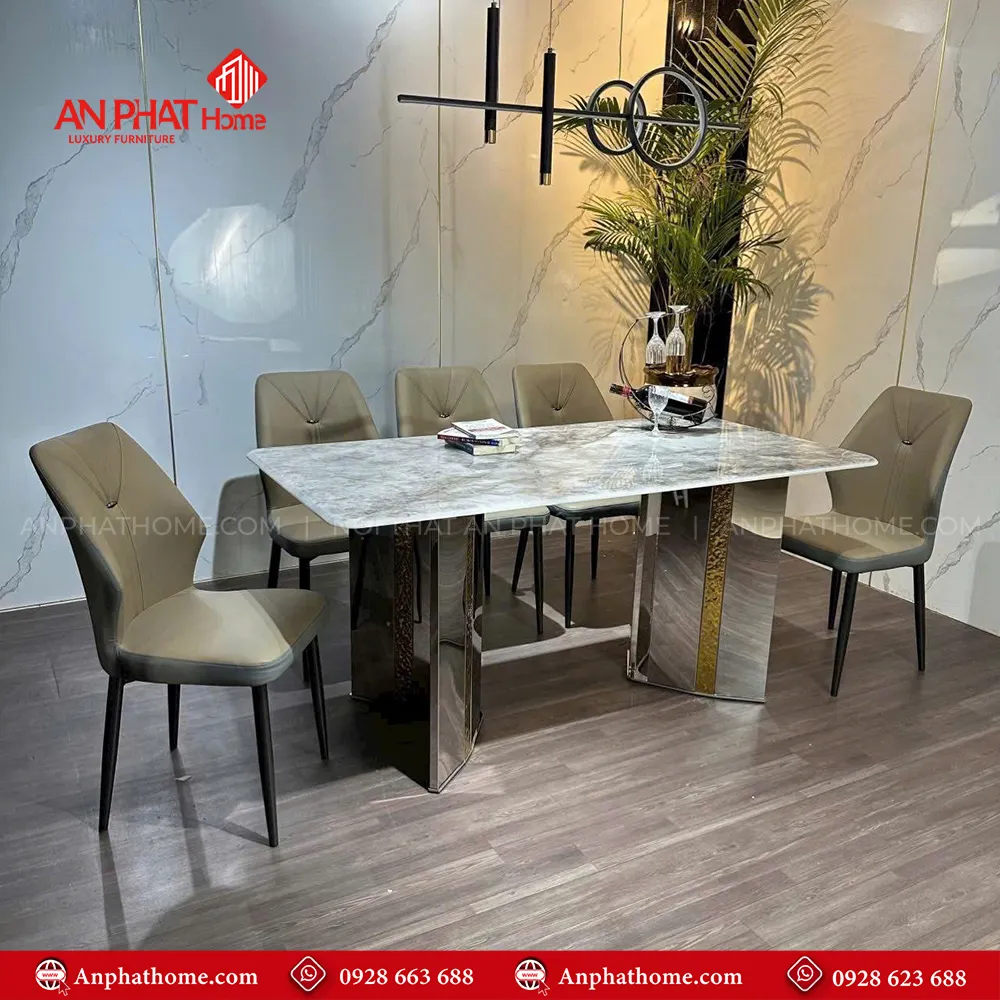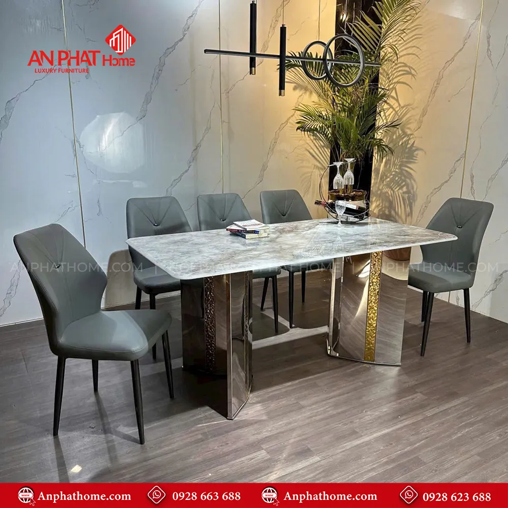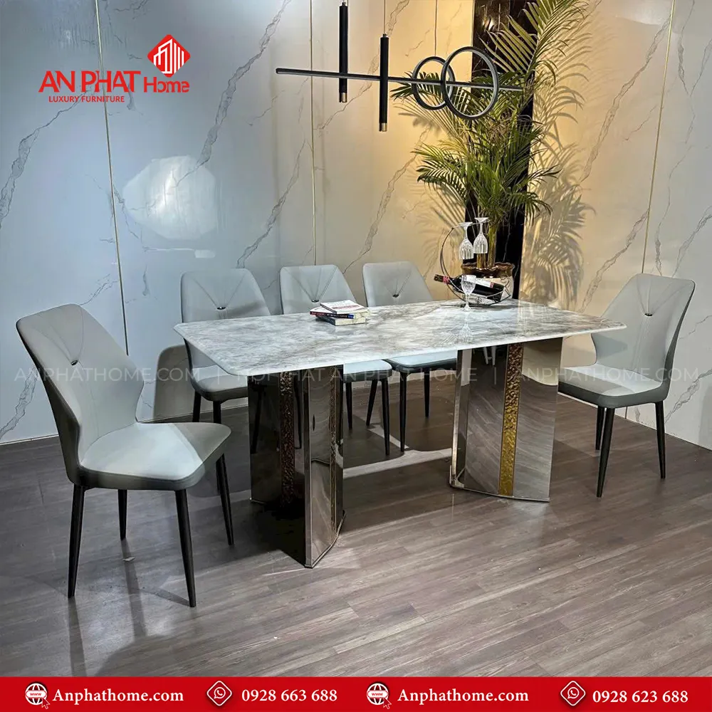 Bộ bàn ăn mặt đá chân inox 6 ghế nhập khẩu BA-2016