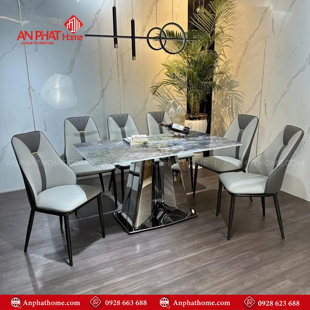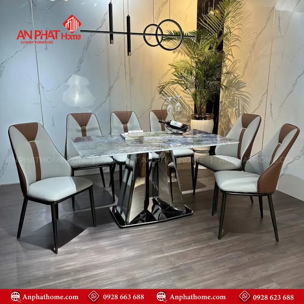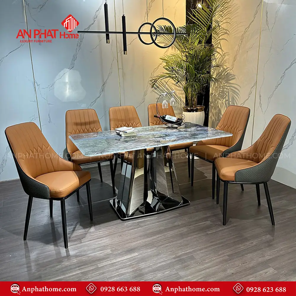 Bộ bàn ăn mặt đá thạch anh 6 ghế da nhập khẩu BA-1973