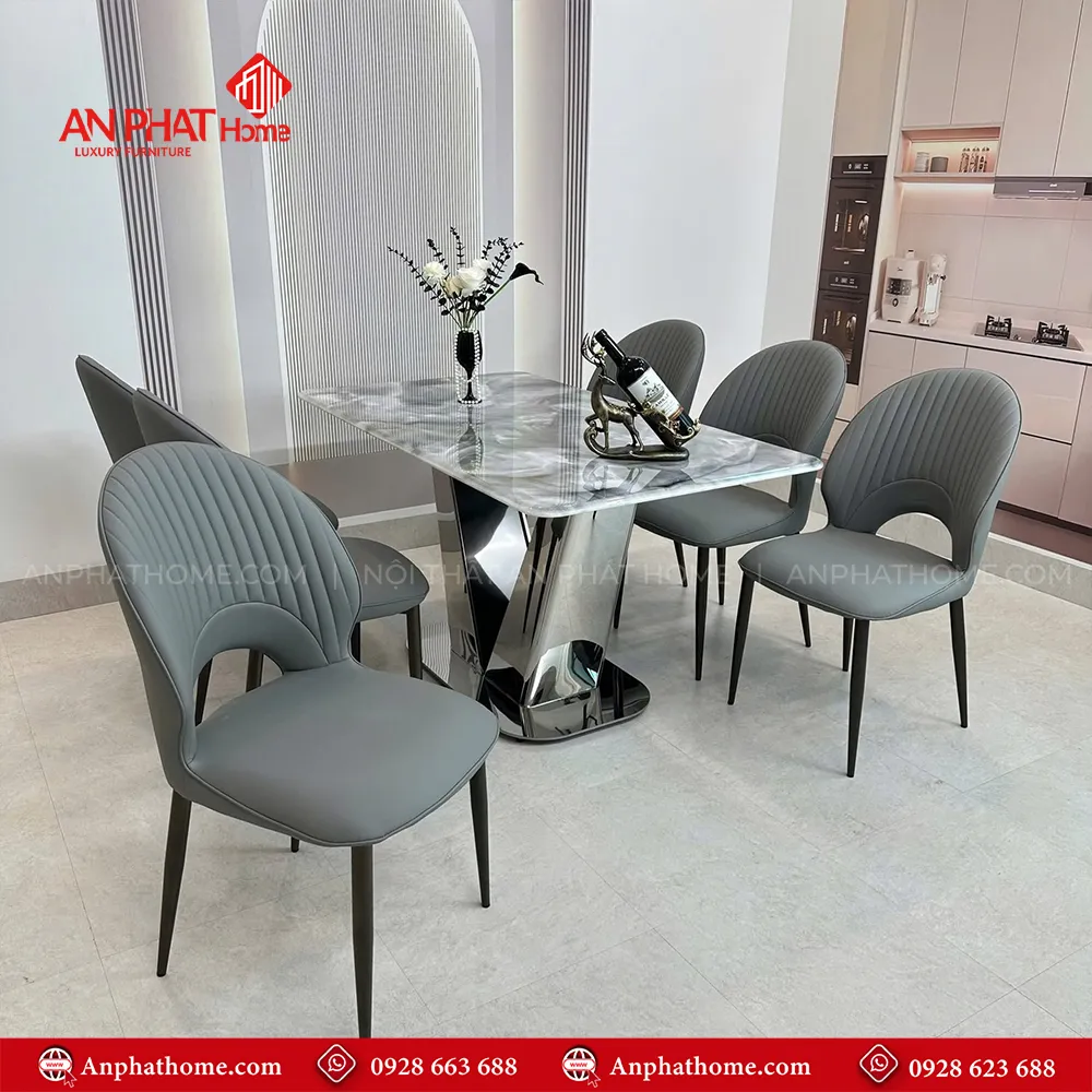 Bộ bàn ăn mặt đá thạch anh ghế da nhập khẩu BA-1957
