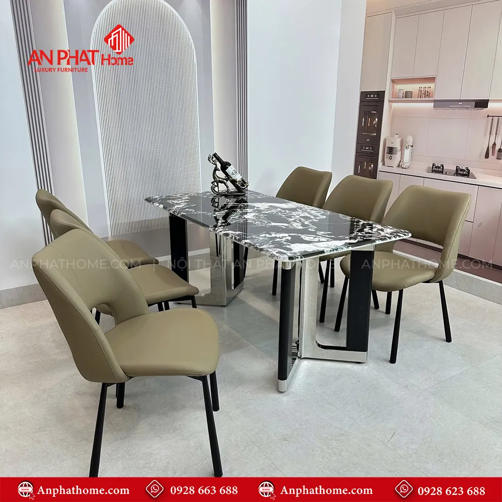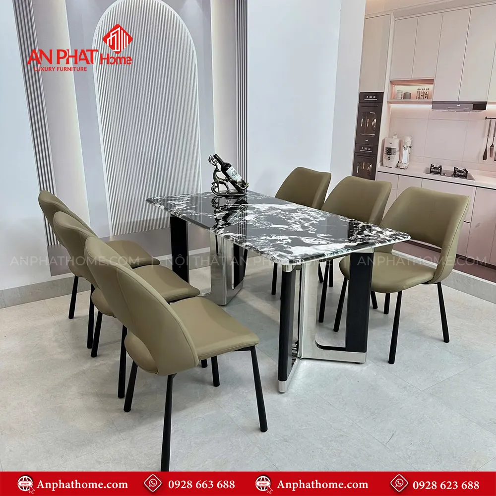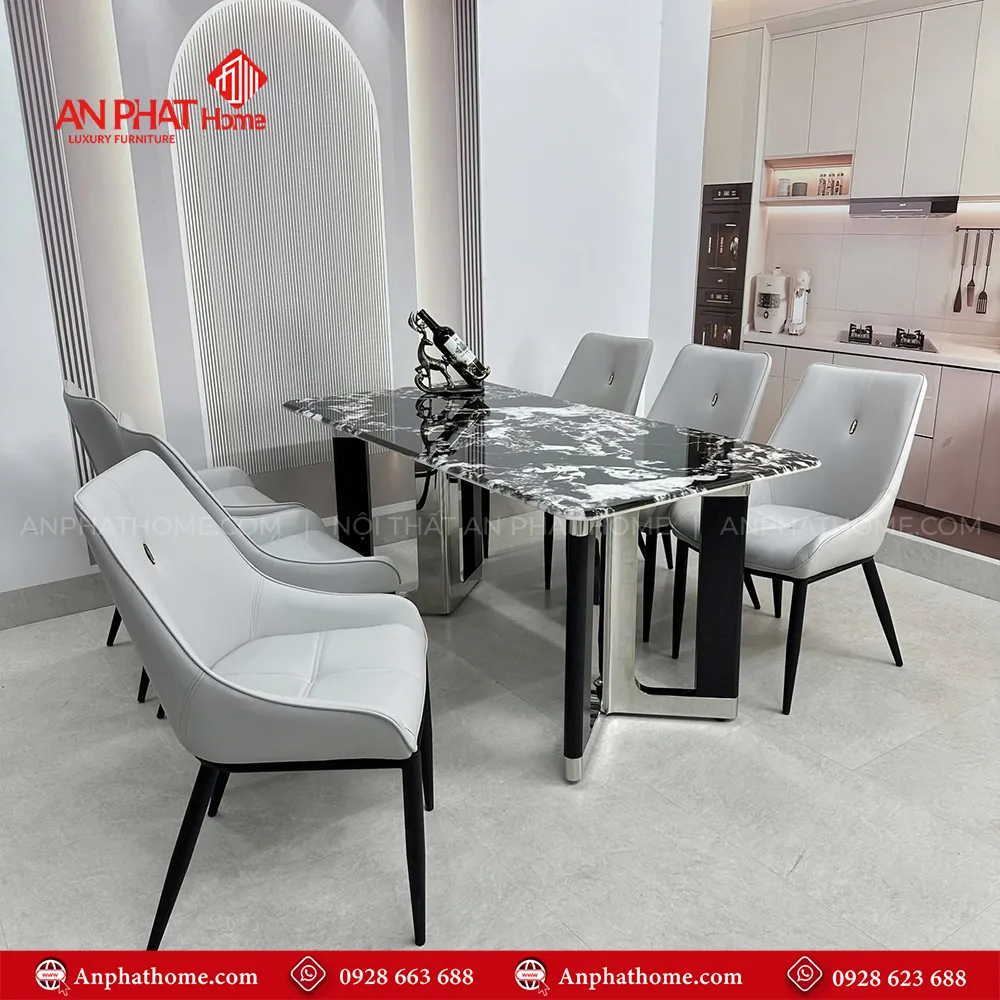 Bộ bàn ăn mặt đá thạch anh kết hợp 6 ghế da nhập khẩu BA-1952