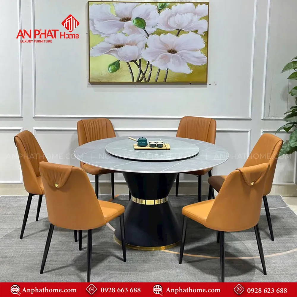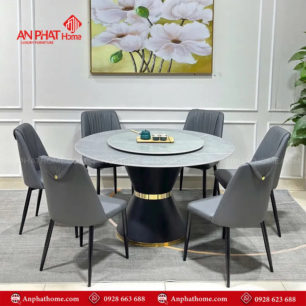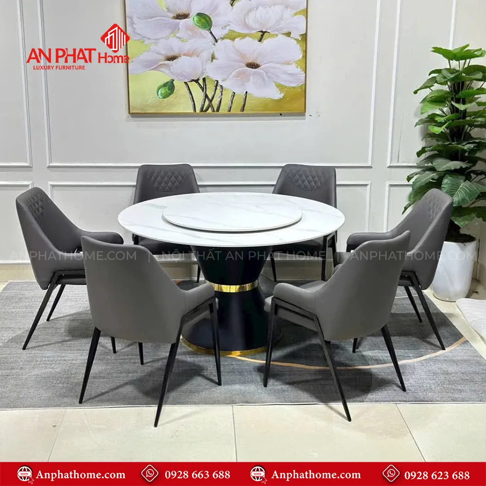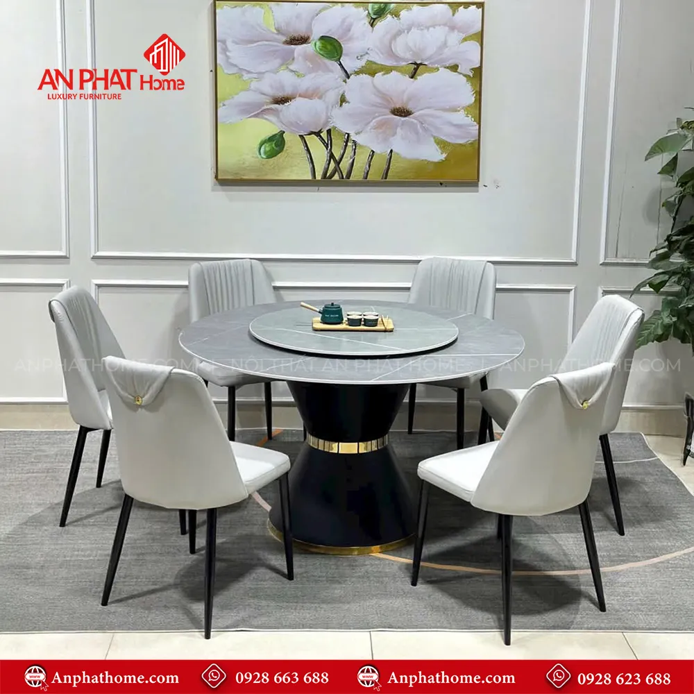 Bộ bàn ăn mặt đá tròn xoay 2 tầng sang trọng BA-1923