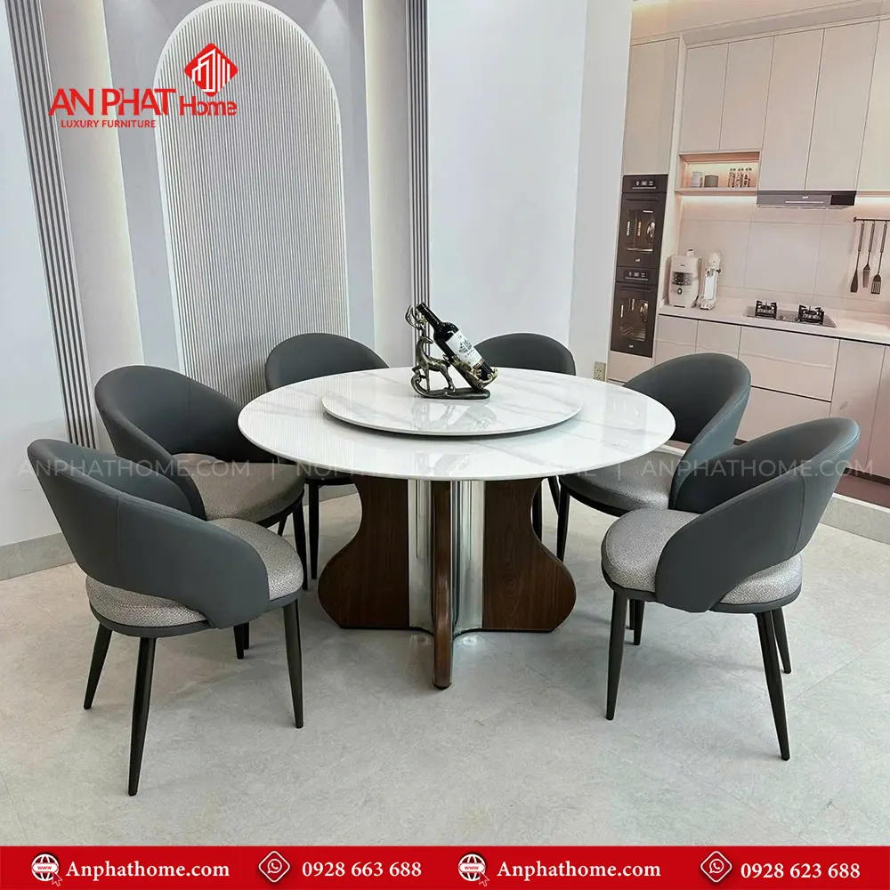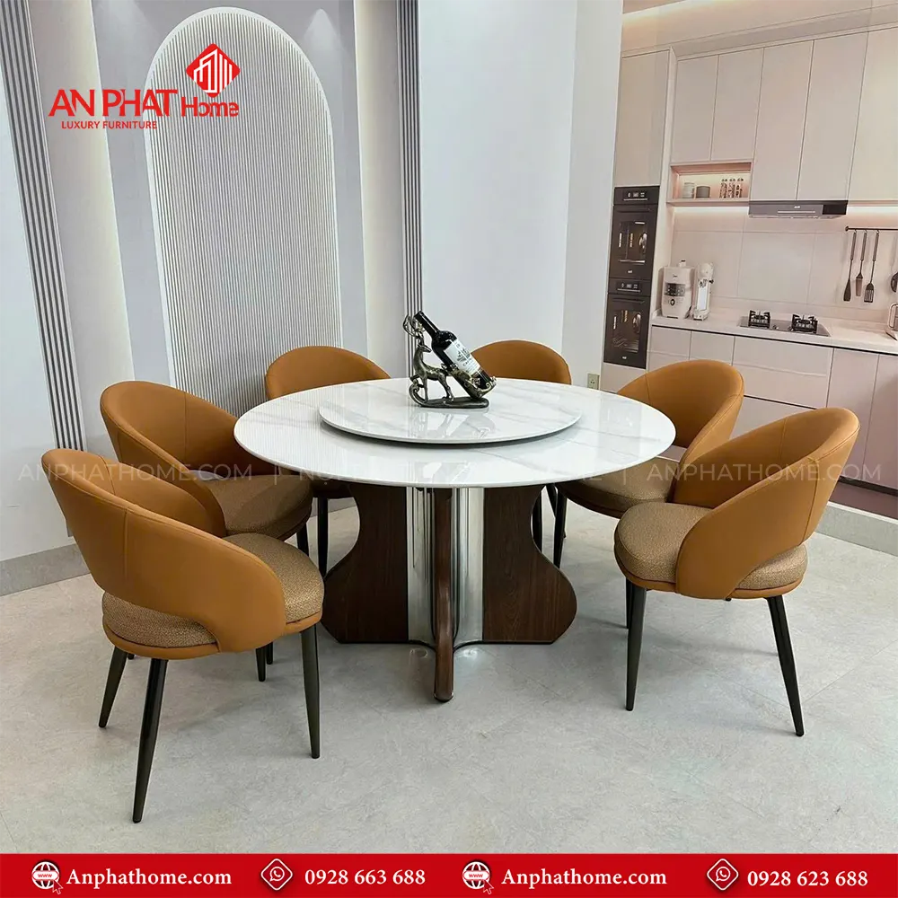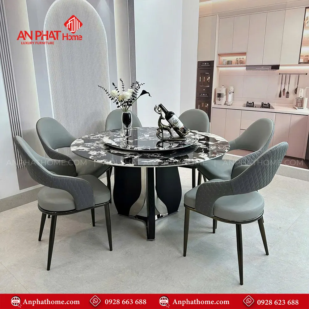 Bộ bàn ghế ăn mặt đá tròn xoay cao cấp BA-2002