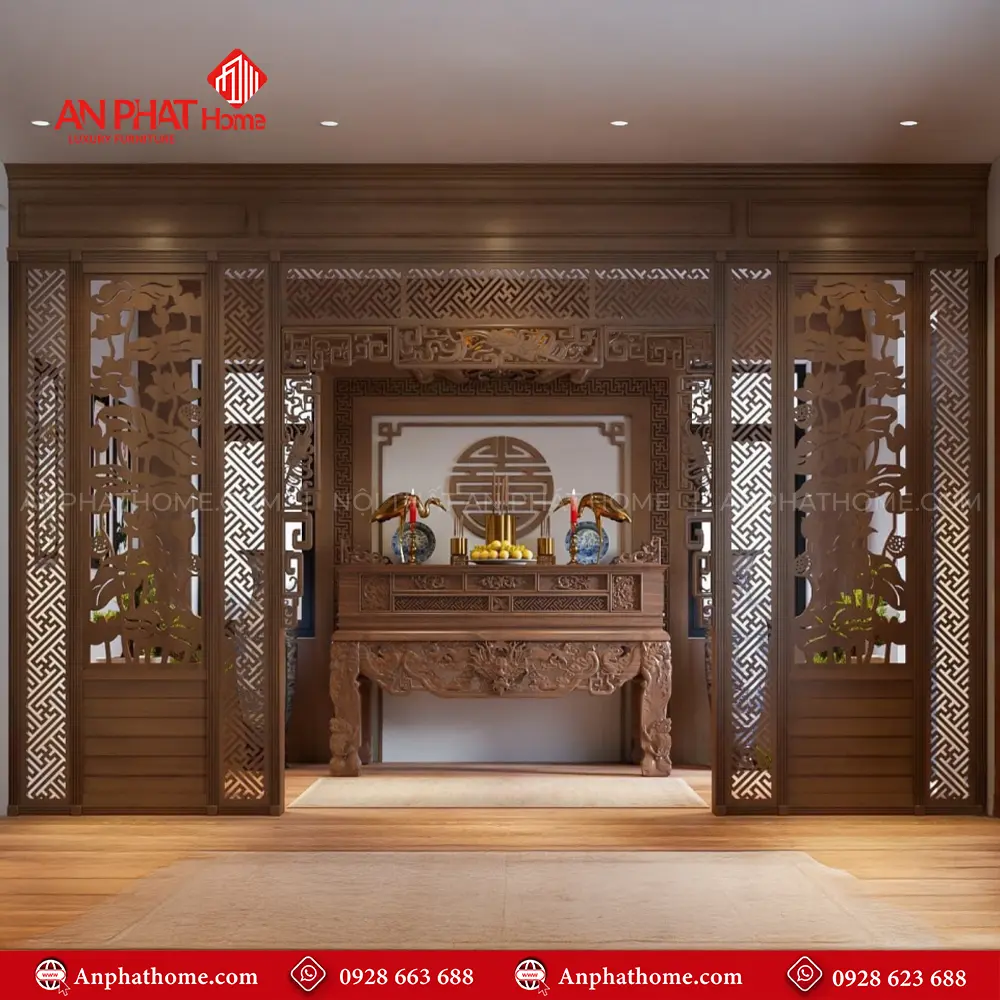 Cửa Võng Phòng Thờ Kết Hợp Vách Ốp Sau VN-4386