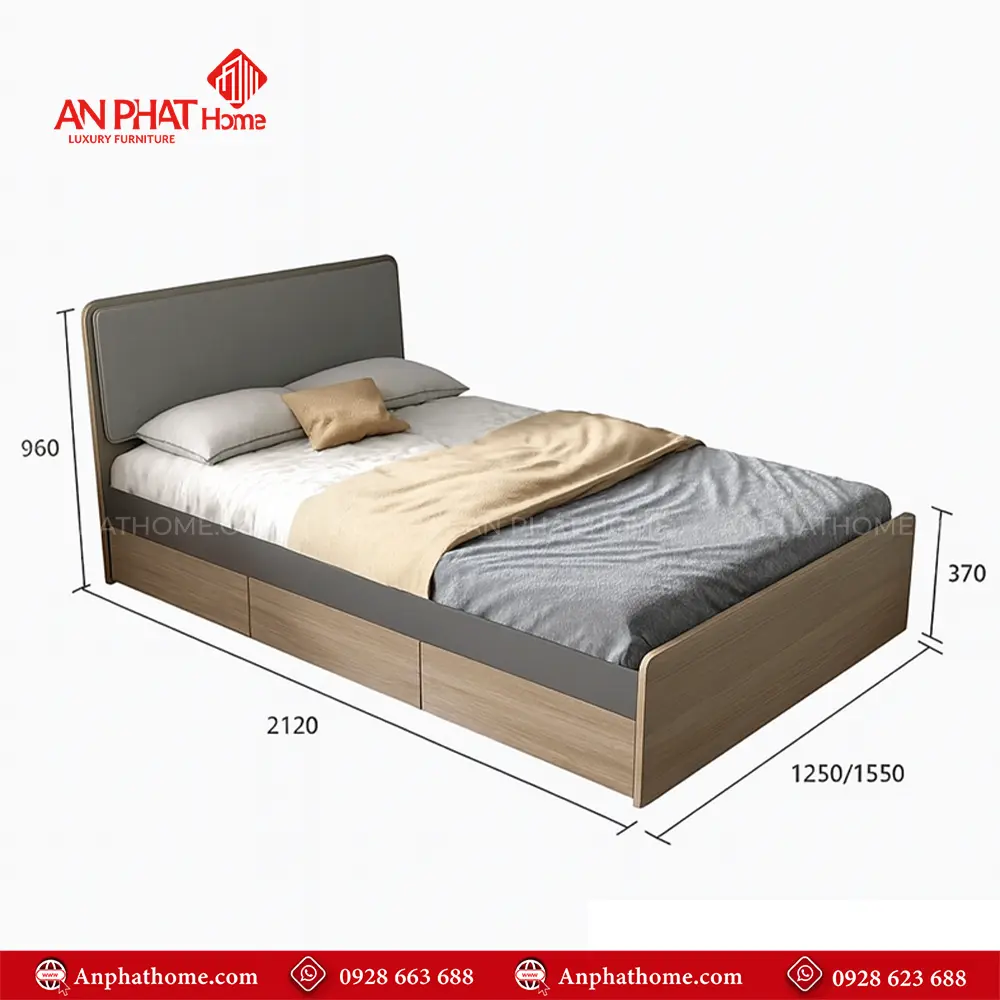 • Nệm Đầu Giường + 3 Ngăn Kéo + 3 Cánh Lật