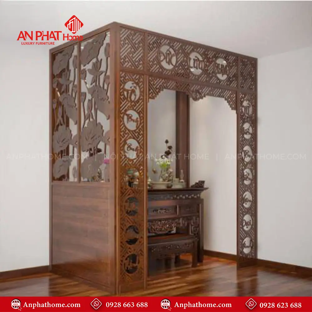 Mẫu Thiết Kế Vách Ngăn Phòng Thờ Hoa Sen VN-4429