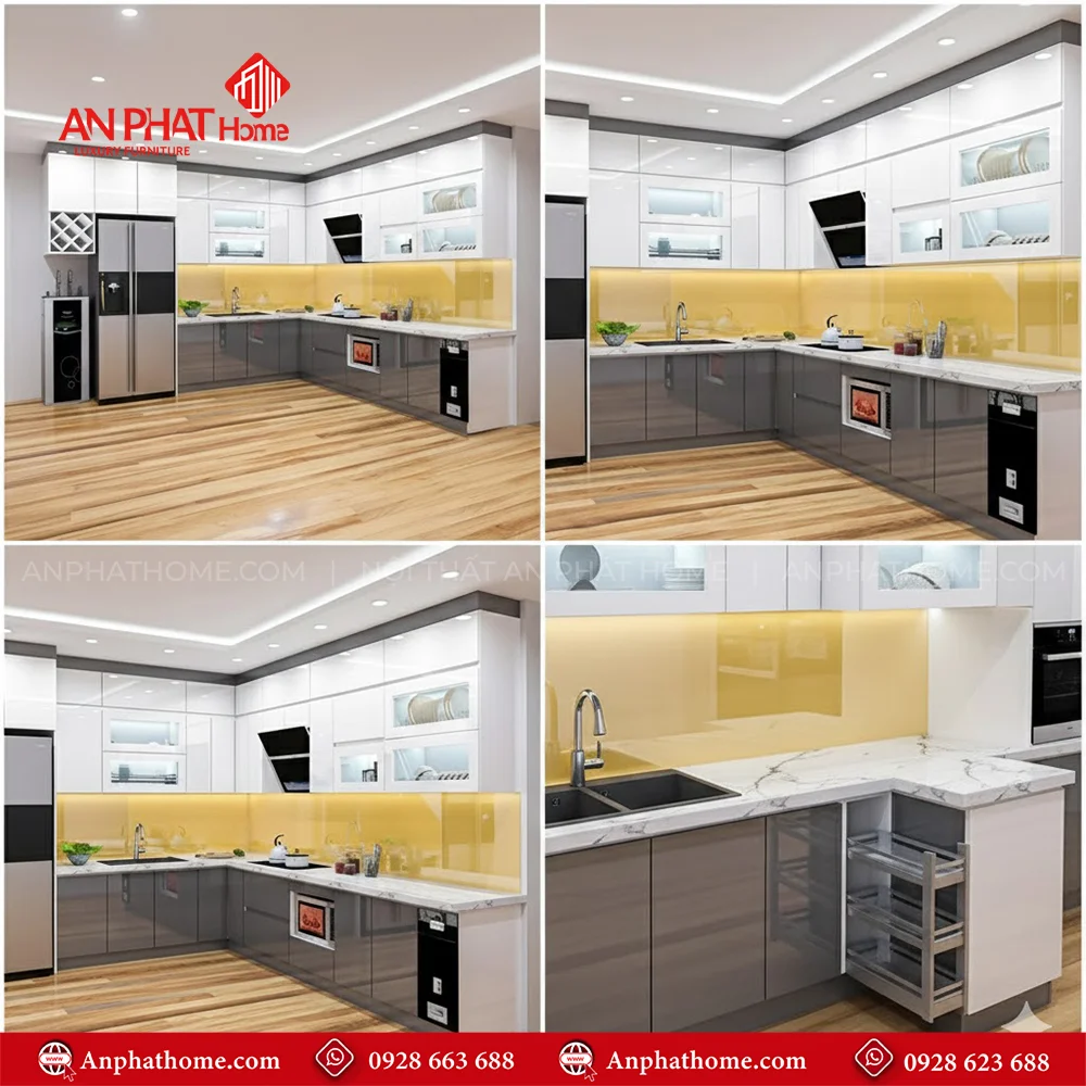 Tủ bếp đẹp bằng MDF, Acrylic, Nhôm Kính
