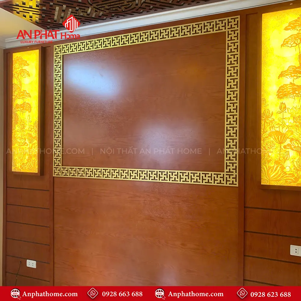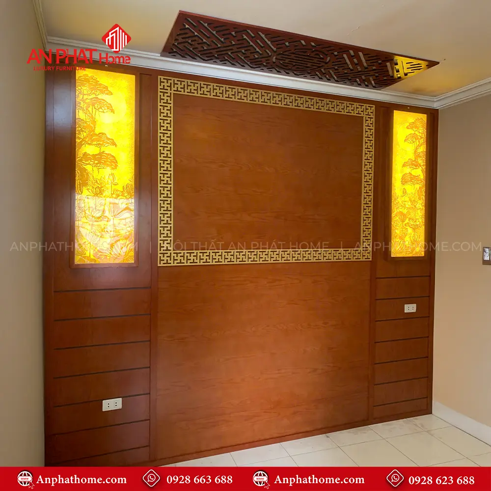 Mẫu Vách Ốp Phòng Thờ Kết Hợp Tranh Trúc Chỉ VN-4360