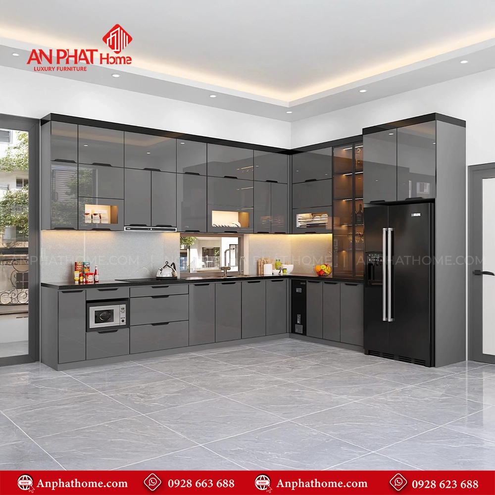 Mẫu tủ bếp đẹp hình chữ L hiện đại