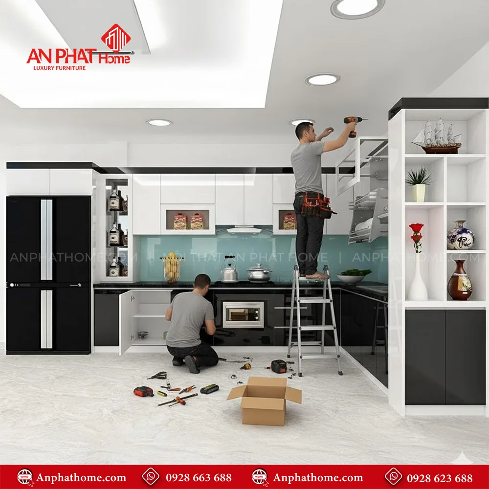 • Giá bán: Tính mét dài Từng tủ trên và dưới