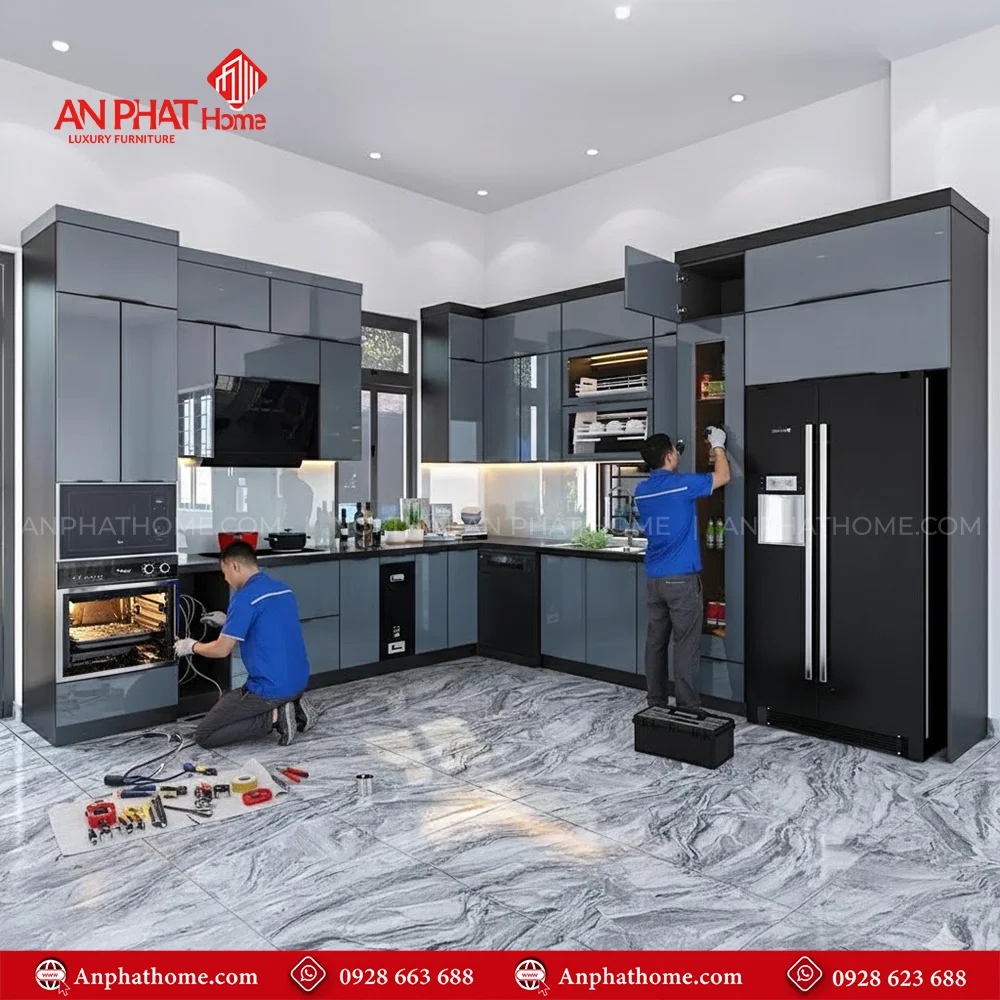 • Giá bán: Tính mét dài Từng tủ trên và dưới