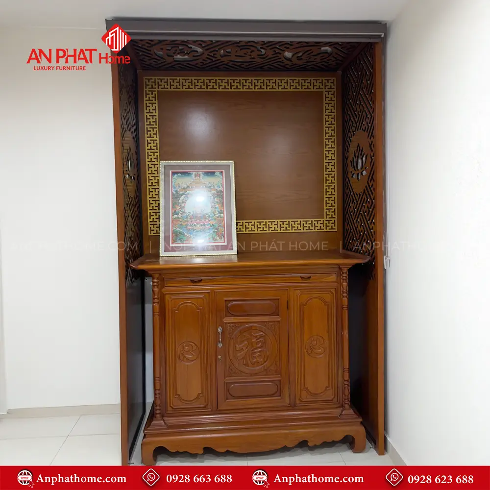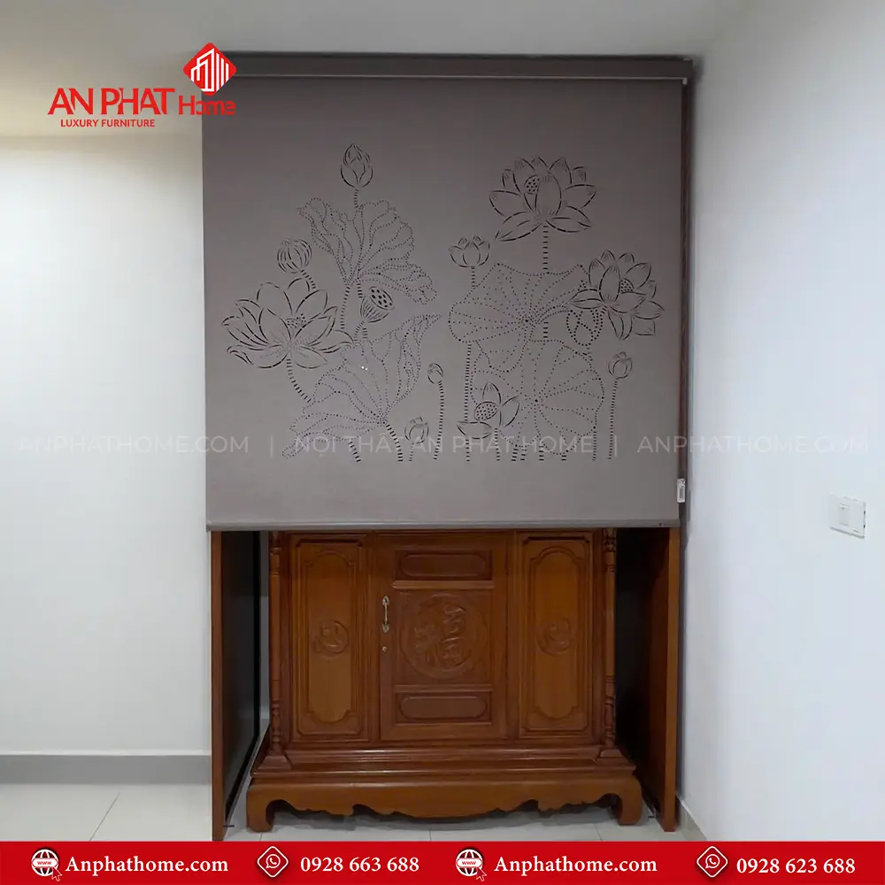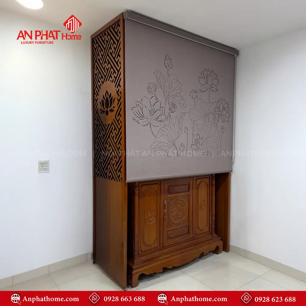 Vách Ngăn Bàn Thờ Đẹp Kết Hợp Rèm Vải Che Bàn Thờ VN-4361